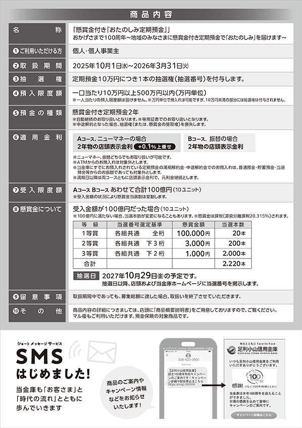 抽選権 | 定期預金10万円につき1本の抽選権(抽選番号)を付与 |