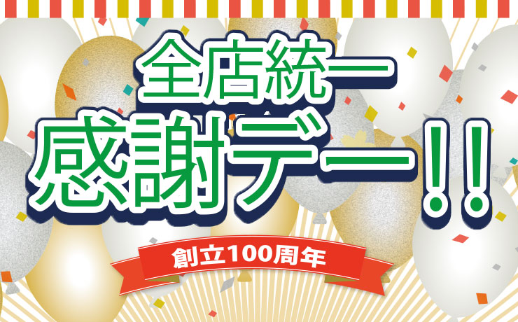 お客さまや地域のみなさまに支えていただいたことに感謝いたしまして、下記のとおり全店統一感謝デーを実施いたします。みなさまのご来店を心よりお待ちしております。